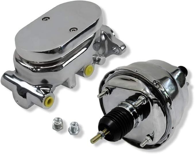 demotor performance 7 dual diaphragm chrome brake booster & gm chrome aluminum brake master cylinder — new 8 dual diaphragm chrome plated power brake booster, master cylinder and disc/drum proportioning valve combo. upgrade your factory power brake booster & master cylinder with this 8 inch dual diaphragm chrome power brake booster and master cylinder kit. — the complete chrome brake booster and master cylinder kits include a chrome dual diaphragm booster, smooth. find ford master cylinder and brake booster assemblies chrome master cylinder finish and get free shipping on orders.